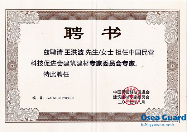 2017年8月26日第三屆全國建筑建材民營企業(yè)科技創(chuàng)新發(fā)展大會(huì)暨建筑建材專家論壇在雄安新區(qū)白洋淀凱盛國賓度假村隆重召開。 歐西建科總經(jīng)理王洪波和渠道部經(jīng)理李勇應(yīng)邀出席參加會(huì)議,會(huì)上王洪波總經(jīng)理當(dāng)選為中國民營科技促進(jìn)會(huì)建筑建材專家委員會(huì)副理事長并獲得了中國民營科技促進(jìn)會(huì)建筑建材專家委員會(huì)專家委員會(huì)專家聘書。