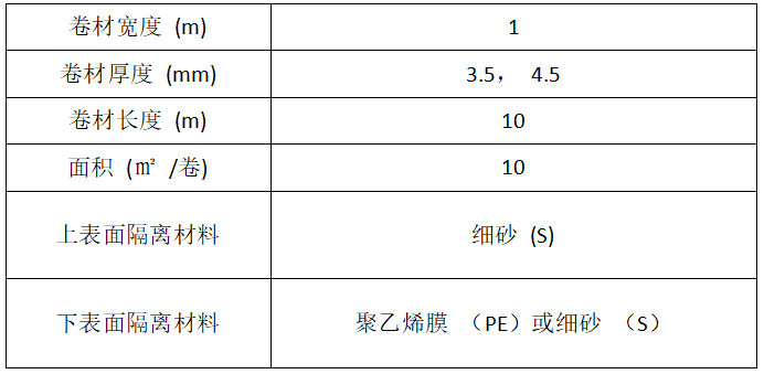 (APAO、APO) 為改性劑,摻入特殊改性劑改善材料抗剪切性能,聚酯胎基布為加強層,表面以細(xì)砂 (S) 做隔離材料所制成的可以卷曲的片狀防水材料。產(chǎn)品符合JC/T974-2005《道橋用改性瀝青防水卷材》的要求。